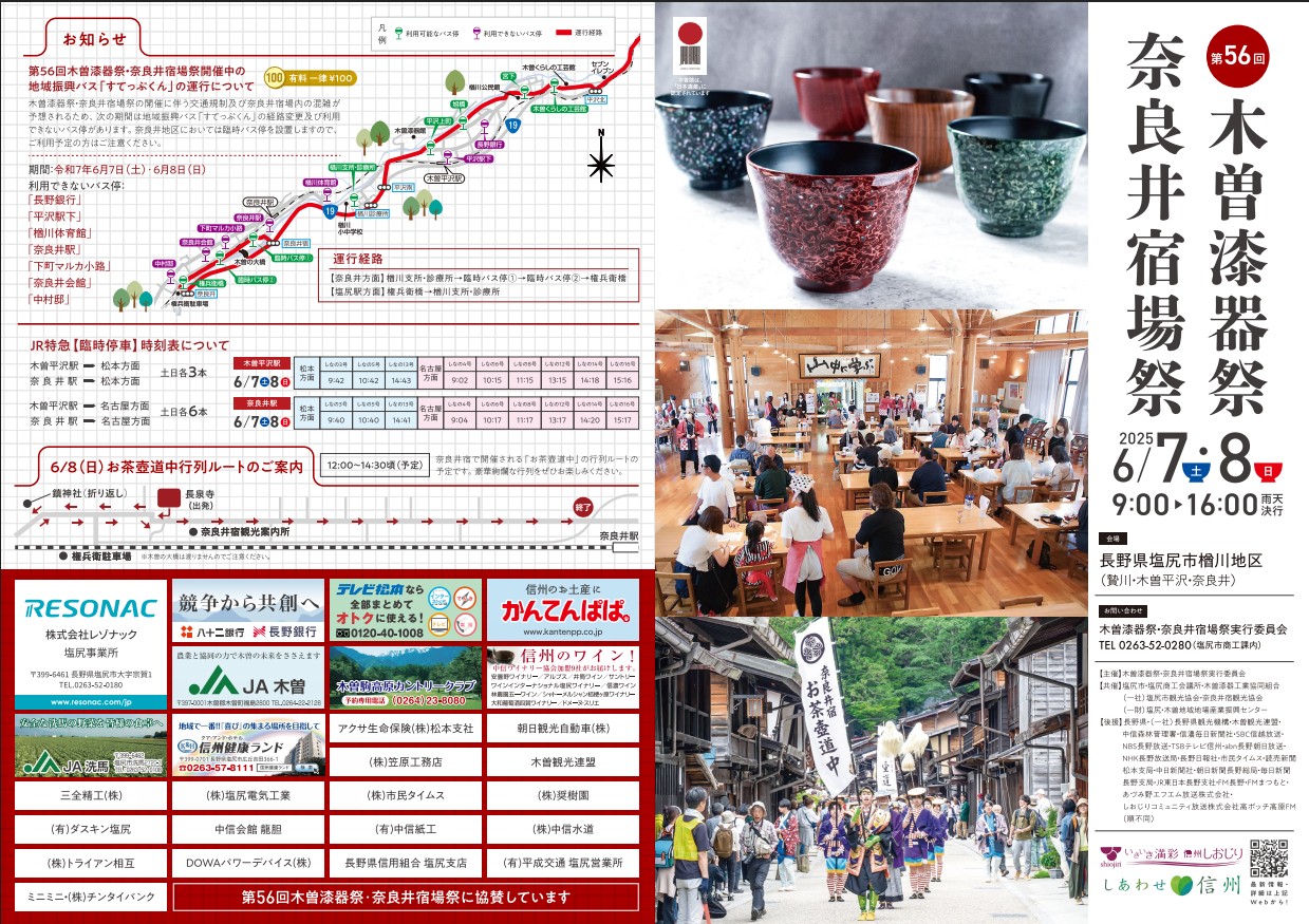 - 6/7(土)-8(日) 木曽漆器祭・奈良井宿場祭@塩尻市(木曽平沢・奈良井宿)