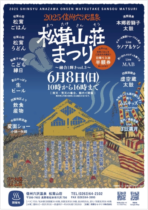 - 6/8(日) 松茸山荘まつり@松本市信州穴沢温泉 松茸山荘