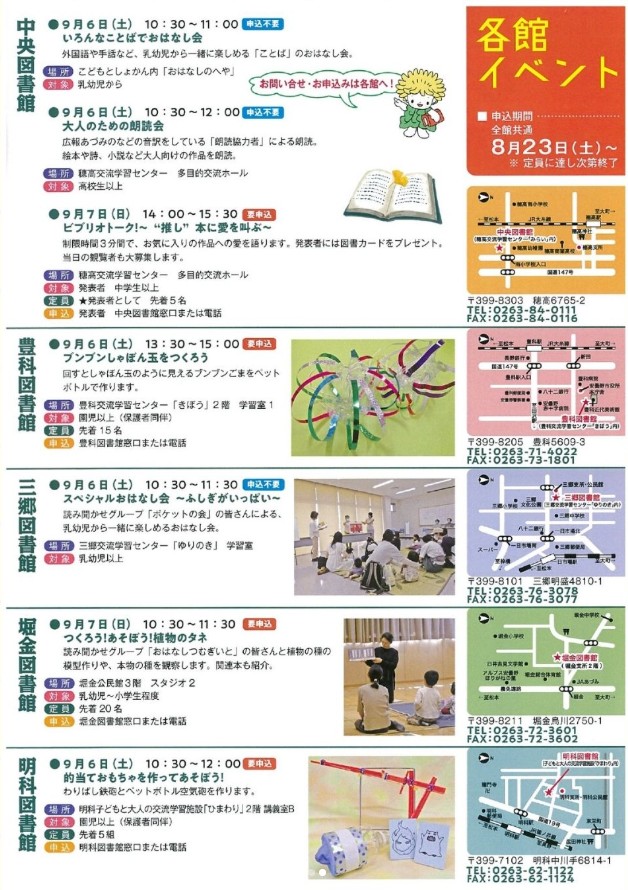 - 9/6(土)-7(日) 図書館フェスタ@安曇野市内の各図書館