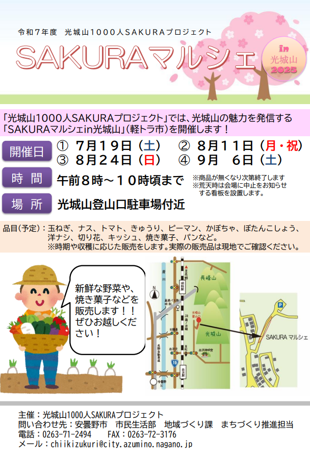 - 9/6(土) SAKURAマルシェ@安曇野市光城山登山口駐車場付近