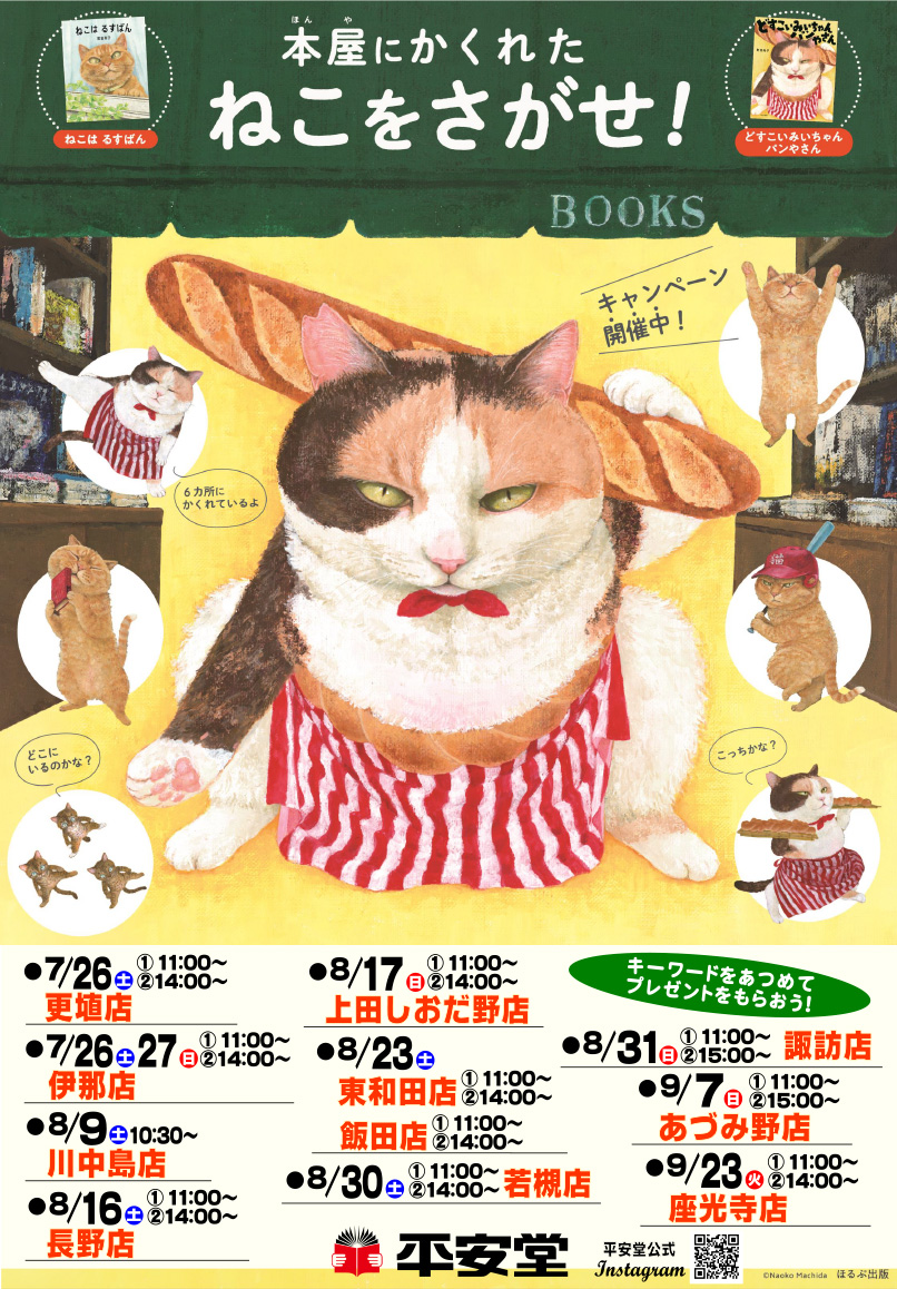 - 9/7(日) 本屋にかくれた ネコを探せ!@安曇野市平安堂あづみ野店