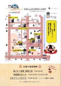 仮装して参加施設に行くとお菓子がもらえたりするので、近くの日帰り温泉巡りを楽しみつつ参加してみるのも良さそうです。