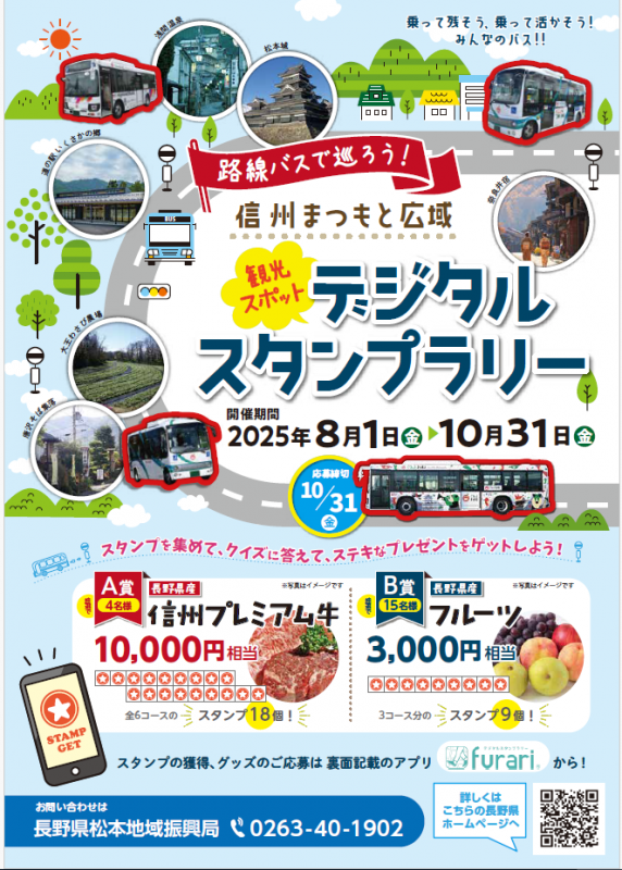 ・「路線バスで巡ろう!信州まつもと広域 観光スポットデジタルスタンプラリー(8/1~10/31)