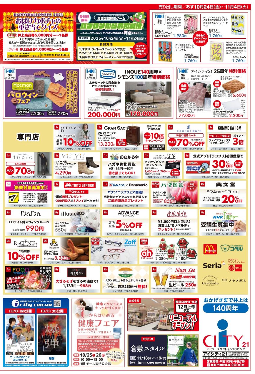 井上アイシティ21で25周年誕生祭が10/24~11/4に開催されます。