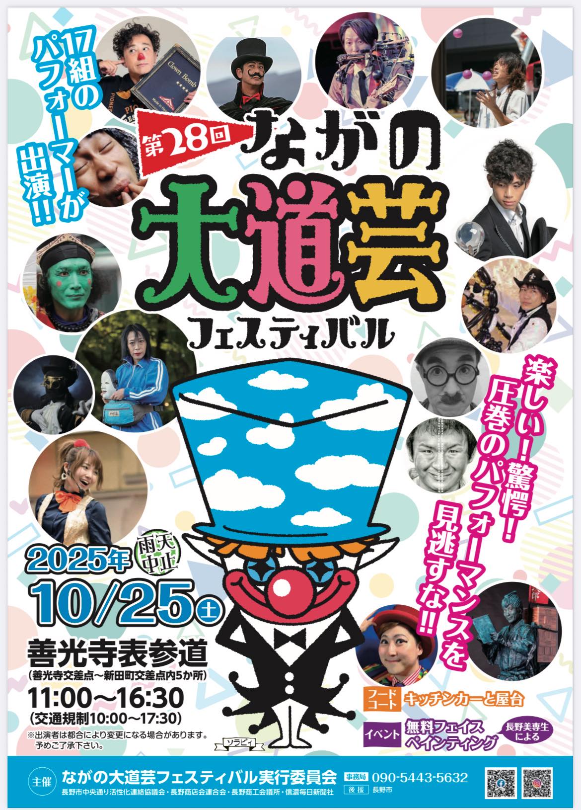 - 10/25(土) ながの大道芸フェスティバル@長野市善光寺表参道 ※雨天中止