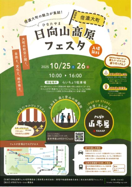- 10/25(土)-26(日) 日向山高原フェスタ@信濃大町らいちょう駐車場+くろよんリゾート