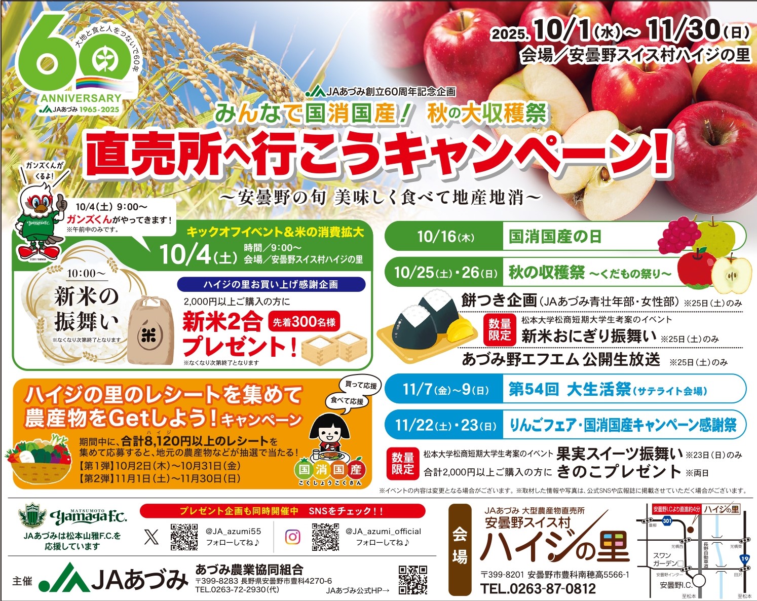 - 10/25(土) おでかけホリデー&収穫祭@松川村・安曇野ちひろ公園