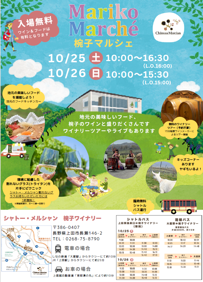 - 10/26(日) 信州安曇野ワインマルシェ@安曇野市碌山公園