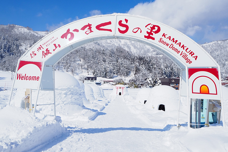 安曇野ICから豊田飯山ICまで高速利用で1時間15分程の飯山市では20基以上のかまくらが設営され、かまくらの中で食事を楽しめる「飯山かまくらの里」が開催されます。