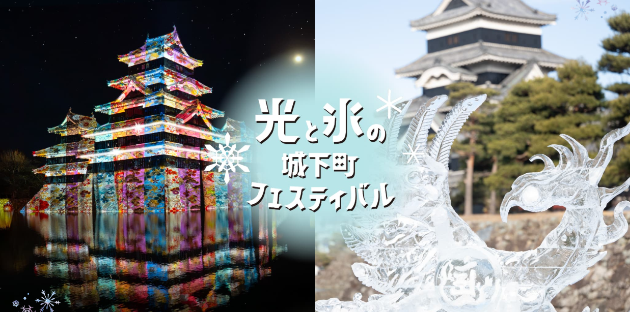 今年も国宝松本城+市街地を会場に冬の恒例イベント「氷彫フェスティバル2026」が開催されます。