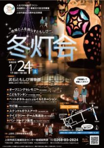 安曇野ICから三才山利用で1時間程の上田市武石ともしび博物館を会場に1/24(土)17時~19時「冬灯会」が開催されます。