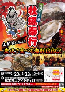 - 2/20(金)-3/23(月) 出張カキ小屋 牡蠣奉行@山形村松本井上アイシティ21