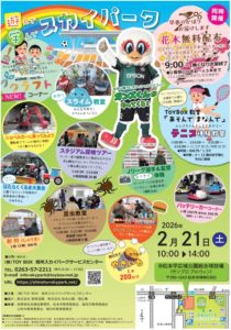 安曇野ICから高速利用で25分、下道利用で35分程の信州スカイパークでは2/21(土)10時~14時「遊んで学んでスカイパーク」を開催予定です。