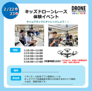 - 2/22(日)-23(月祝) キッズドローンレース体験+α@松本市イオンモール松本
