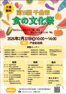 安曇野ICから麻績ICまで高速利用で50分程の千曲市戸倉創造館を会場に2/22(日)10時~14時「食の文化祭」が開催されます。