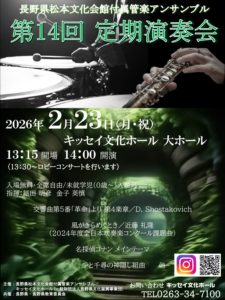 - 2/23(月祝) 付属管楽アンサンブル 定期演奏会@松本市キッセイ文化ホール