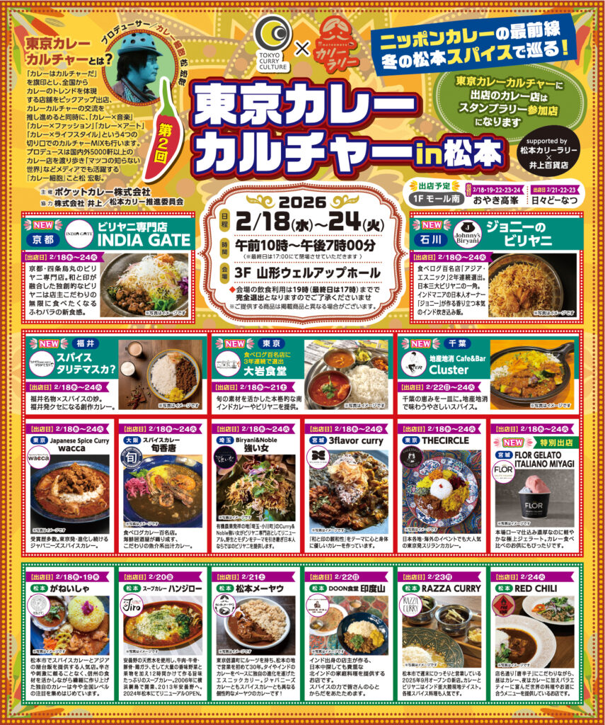 - 2/18(水)~24(火) 東京カレーカルチャー+α@山形村アイシティ21