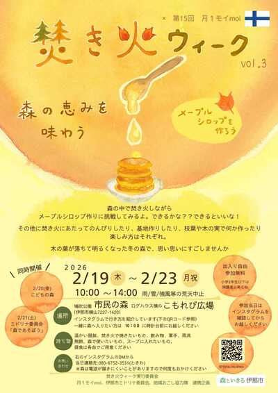2/19(木)~23(月祝) たき火ウィーク@伊那市鳩吹公園・市民の森