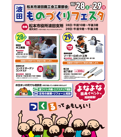 - 10/28(土)-29(日) 波田ものづくりフェスタ@松本市波田支所