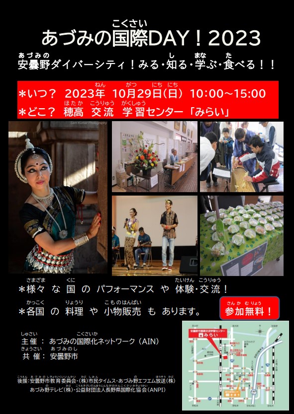 - 10/29(日) あづみの国際Day!2023@安曇野市穂高交流センターみらい