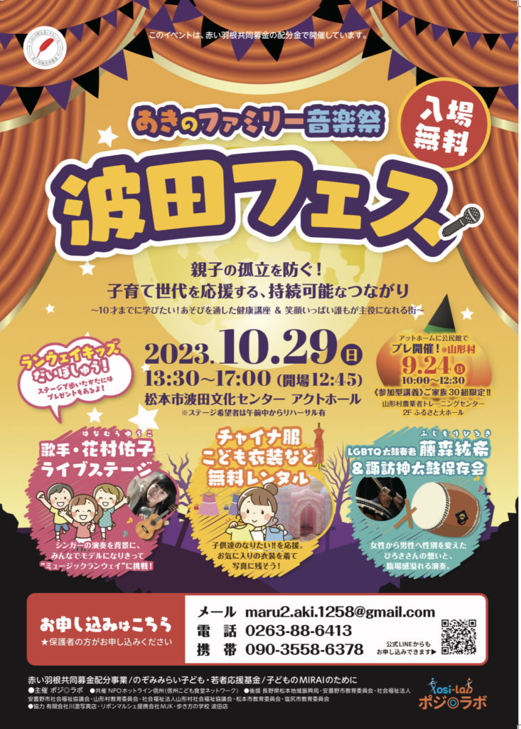 - 10/29(日) あきのファミリー音楽祭 波田フェス@松本市波田文化センター