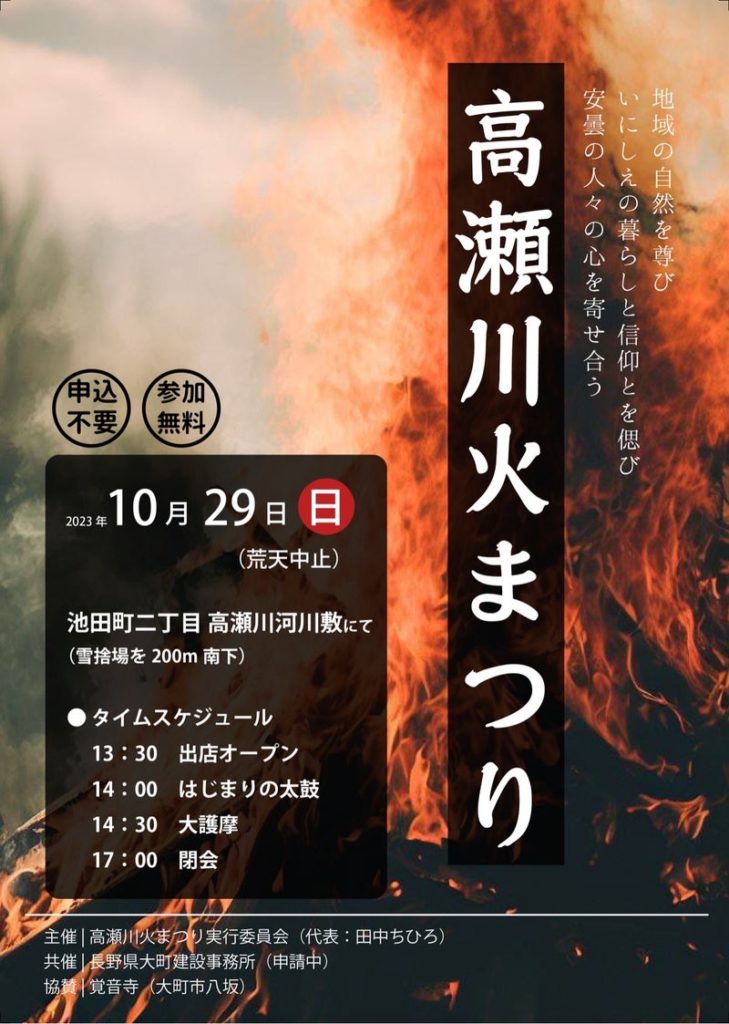 - 10/29(日) 高瀬川火まつり@池田町高瀬川河川敷