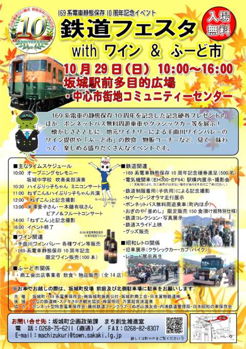 安曇野ICから車で1時間~1時間半程となるしなの鉄道沿線では10/28(土)-29(日)「千曲川ワインゴーランド」としてイベントが各種行われます。