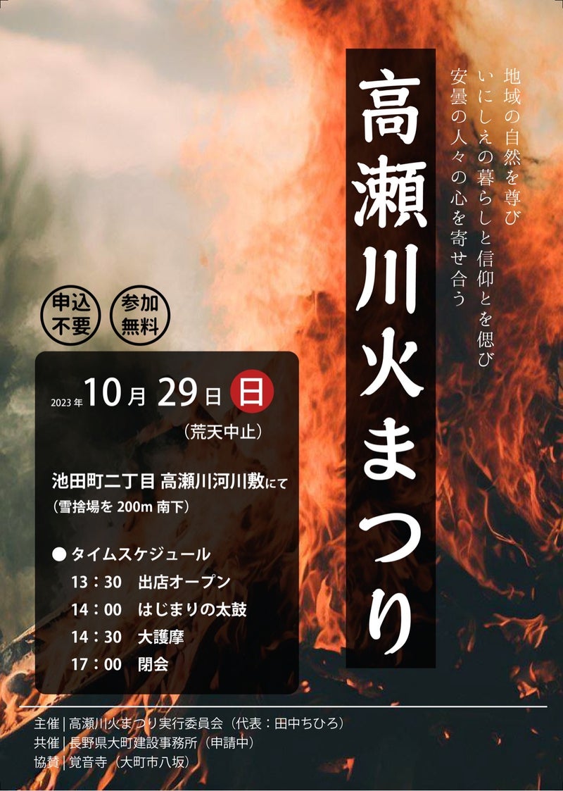 - 10/29(日) 高瀬川火まつり@池田町高瀬川河川敷