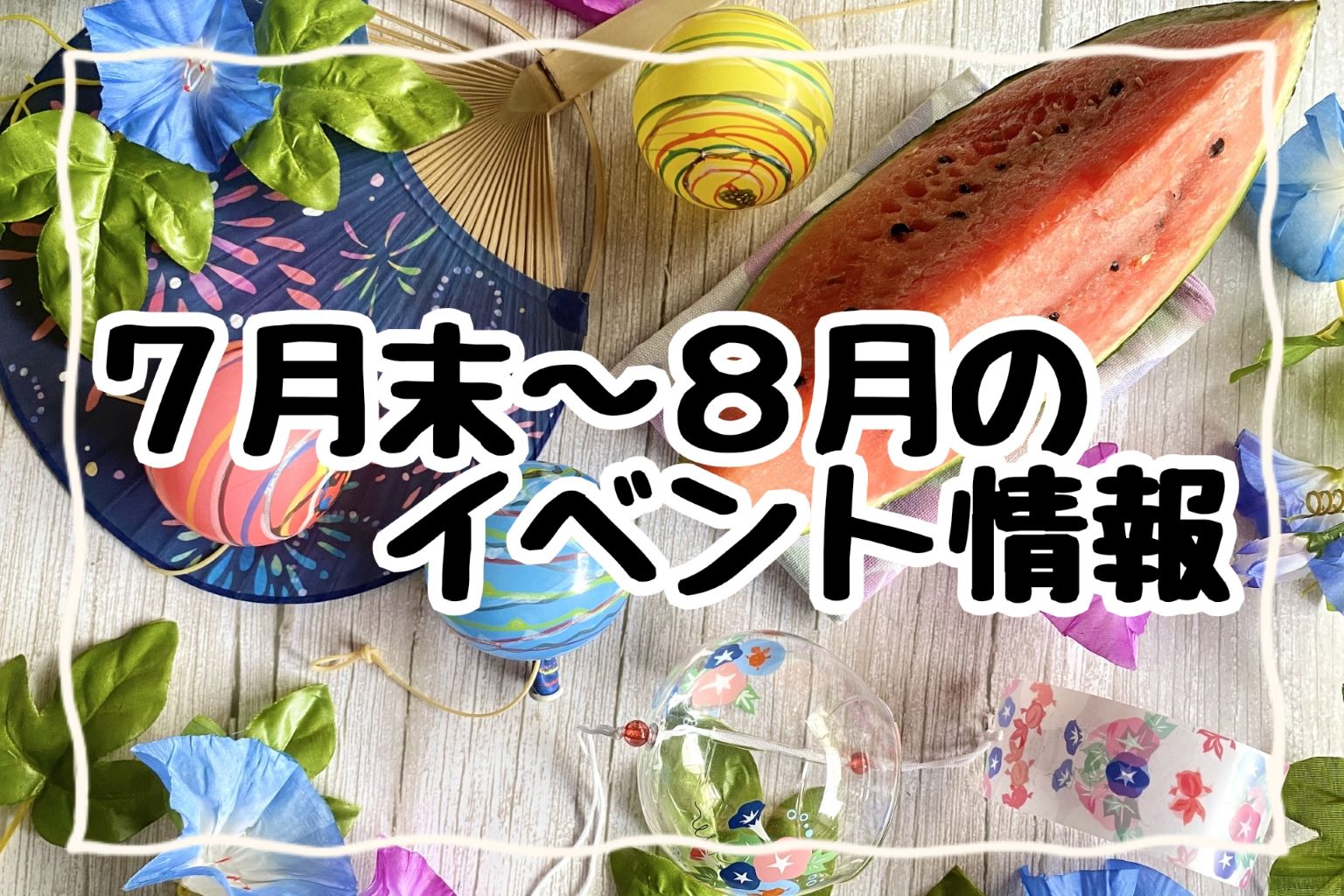 7月末~8月は子供たちも夏休み…ということで週末情報ではなく月情報にしています。…が、夏はイベントが多数で情報整理が追い付いていません!でも要予約のものもチラホラあるので、順次更新としてUPさせて頂きます