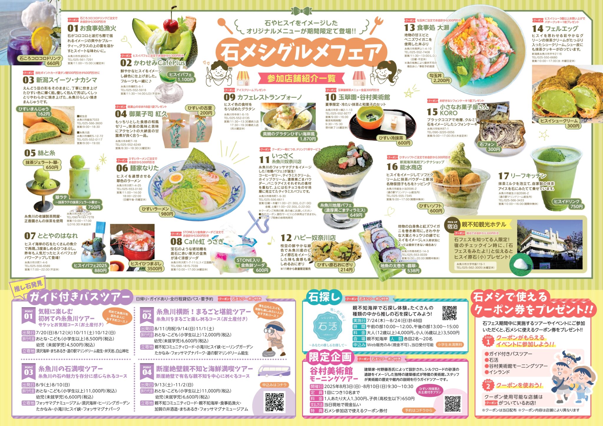 石やヒスイをイメージしたメニューが参加店舗で食べられる他、石にちなんだイベントも各種計画されています。