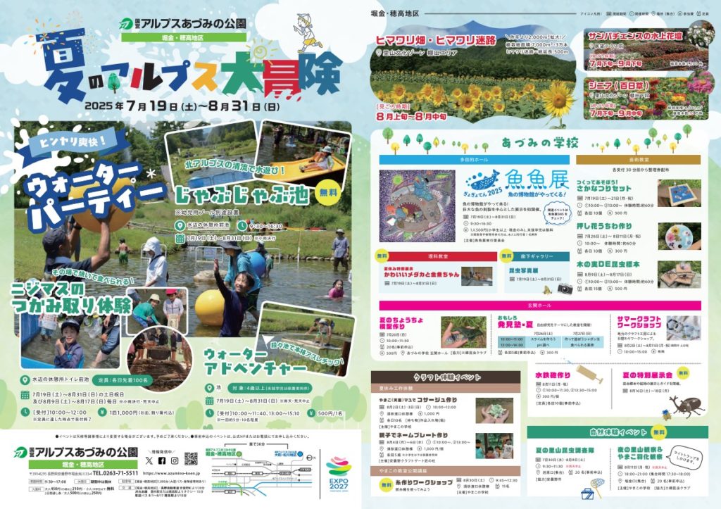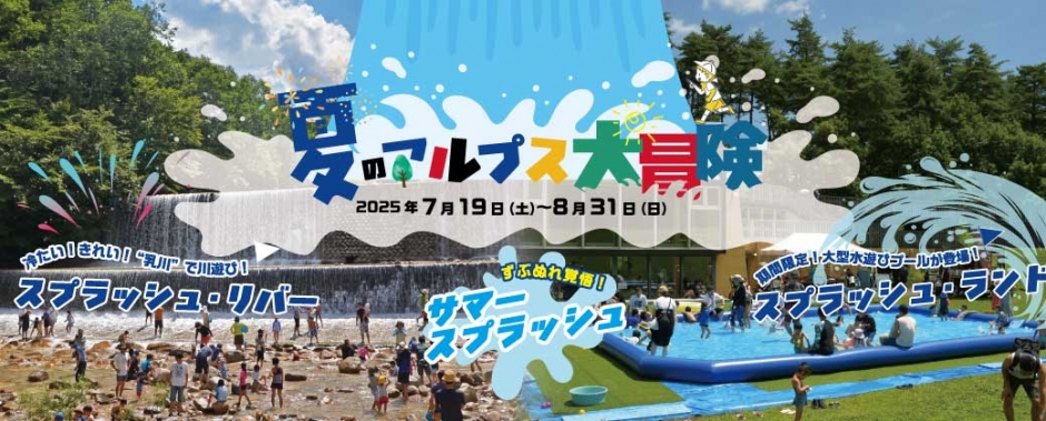 国営アルプスあづみの公園(大町・松川地区)では7/19(土)から恒例の夏イベント「夏のアルプス大冒険-サマースプラッシュ」が開催されます。