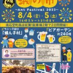| 8/4-5 | 蟻の市![]() | 長野市南石堂商店街 | - | - | [HP] [Facebook] | 8/4-5の16時~21時、南石堂商店街第1駐車場の2F駐車場スペースを利用してビアガーデンが開き、おつまに片手に楽しめます。 また、ちびっこ縁日「蟻ん子村」も開かれて射的や金魚すくい、輪投げなども楽しめる予定です。 さらにWebページには街を歩きながら謎解きゲームが出来る企画があるのでそちらを楽しむのも〇です。 ※8/5(土)は長野びんずるも開催されています。 |