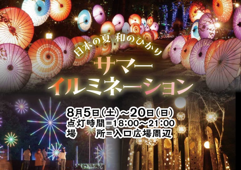 | 8/5-20 | サマーナイトイルミネーション![]() | 国営アルプス あづみの公園 (松川・大町地区) | - | 15歳以上当日券450円 2日通し券500円。 (15歳未満無料) | [HP] | 8/5(土)から8/20の18時~21時は国営アルプス安曇野公園(松川・大町地区)でサマーイルミネーションが開催されます。 直径15mの大輪のイルミネーション花火や、ライトアップされた150本以上の和傘や風鈴が並ぶ散策路、天の川をイメージした頭上に輝くイルミネーションなどが楽しめる予定です。 18時以前に入園して水遊びを楽しんだ後にイルミネーションも楽しみに行くのがオススメです。 |