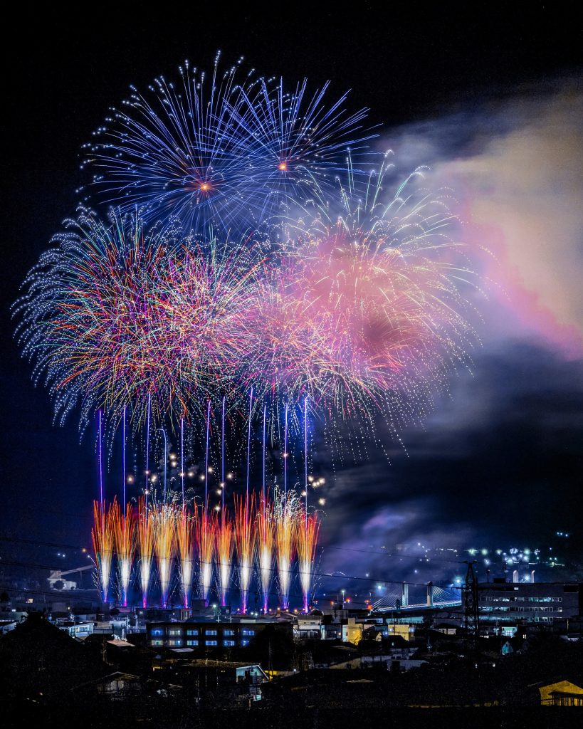 | 8/7 | 千曲川納涼煙火大会 | 千曲市 戸倉上山田温泉 | 一部有料席あり | S席3000円※売切れ A席2000円 B席1000円 | [HP] [Facebook] | 戸倉上山田温泉千曲川河畔を会場に約1万発の花火が打ちあがる大規模な花火大会です。 万葉橋から滝の様に輝く「ナイアガラの滝」やフィナーレの「超特大スターマイン」など豪華な花火が楽しめます。 16時開場で19時半から打ち上げで、多数の屋台も出店予定で込み合う見込みのため、有料席チケットを購入しておくと安心です。 |