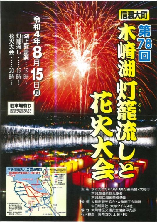 | 8/15 | 木崎湖灯篭流しと 花火大会 ![]() | 大町市 木崎湖南端 | [HP] | |||
