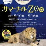 | 8/5 | サタデーナイトズー | 須坂市動物園(本園) | 一般:200円 小中学生:70円 未就学児:無料 | [HP] | 8月の5,12,15,19,26は通常16:45閉園の所、21時まで開園時間を延長して楽しめる「サタデーナイトZOO」を開催予定です。 動物について知れるガイドツアーやふれあいタイムなどのイベントも盛沢山なのでHPをチェックしての訪問がオススメです。 ※朝9時~開園。チケットは1日券のため、途中で退園して再入場も可。 |