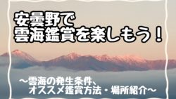 イベント・遊び 安曇野で雲海鑑賞を楽しもう! アズミ昼夜の気温差が大きくなり朝靄がでる様になったら雲海鑑賞のチャンス!そのことを知人から教えて頂いて鑑賞しに行ったら本当に綺麗で感動したので皆様にも是非鑑賞頂きたく、紹介させていただきます!綺麗な雲海が出る季節・条件雲海は飛行機や高い山の... 2023.10.19 2024.10.28 イベント・遊び